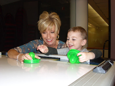 B. Jackson was riding in the car with me from church to lunch yesterday like he usually does, but on this occasion he said something for the very first time: “Bibby, turn that up!” It was a praise CD. A monumental moment in a life, if you ask me. When I turned up the volume, I glanced in the rear view mirror and saw those little wheels rolling in his head and his big blue eyes cut over to the side, brows drawn down, trying to figure out whether or not he knew that Tomlin song. He’s starting to sing along with all sorts of different songs and guess who he requests most of all? David Crowder. Isn’t that a kick? You ought to hear him say his name. So precious you can’t stand it. And, by the way, he’s outgrown his shoes AGAIN. His feet are huge. (Jackson’s, not David Crowder’s. I don’t know if David has big feet or not. I’ll glance at them in January at Passion.)