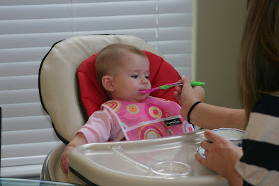 Here are some pictures of her playing with her spoon this morning while Jackson and I ate our breakfast.